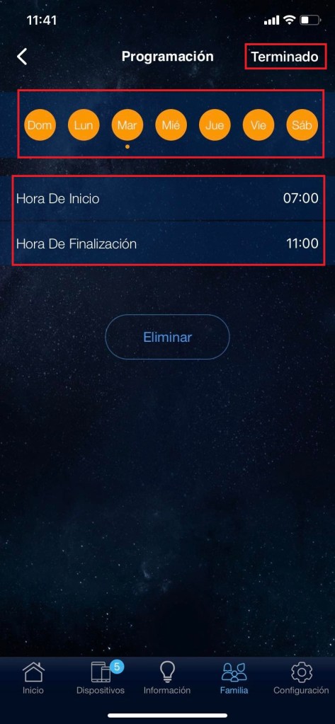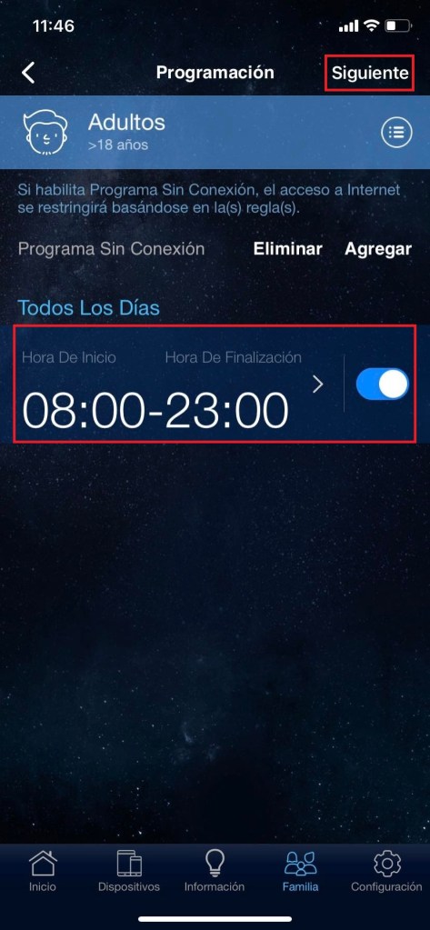 Para ello tendremos que realizar los mismos pasos hechos en el inciso #3. Pero los horarios pueden cambiar dependiendo la configuración que coloquemos para así cuidar la seguridad de nuestra familia.