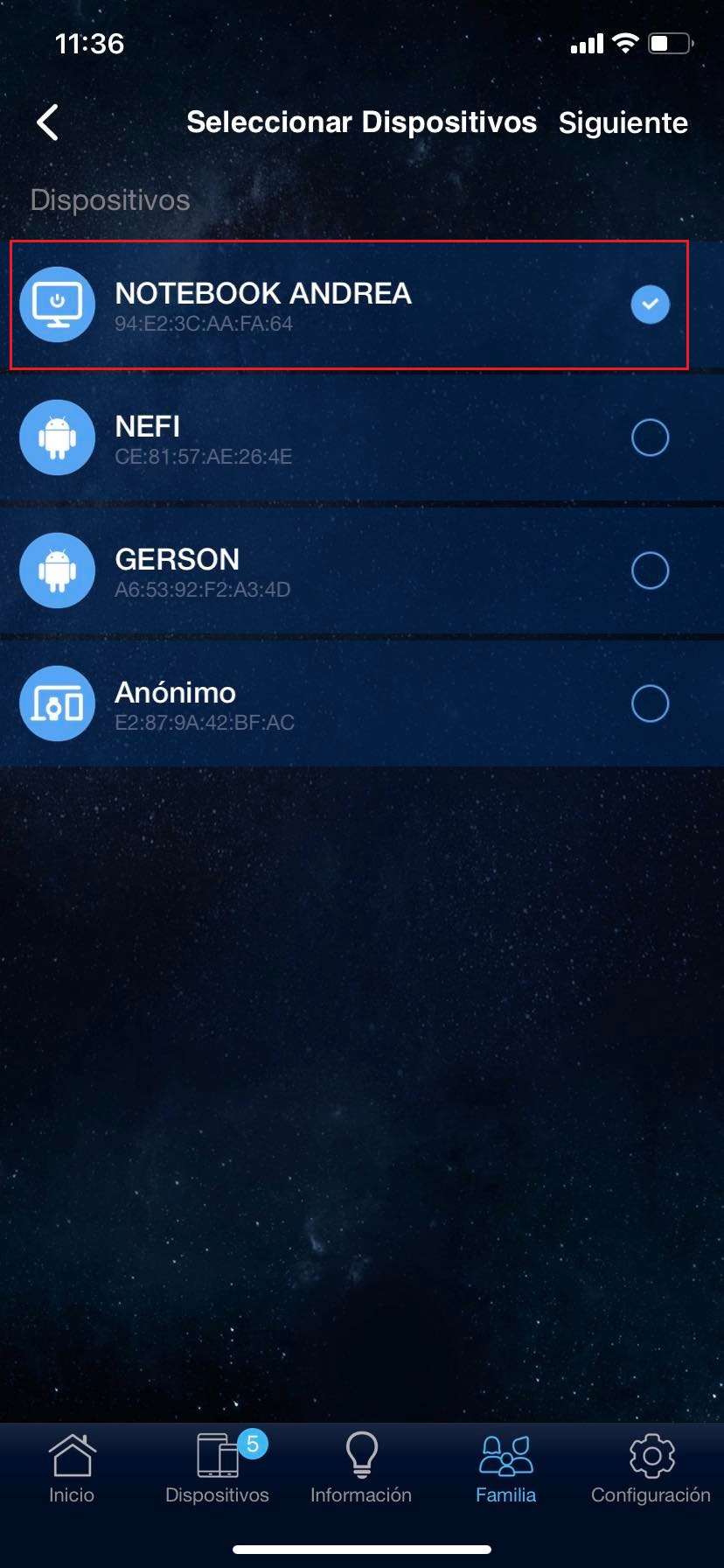 Para poder administrar nuestros dispositivos con control parental tendremos que ir a la parte inferior en el apartado de «Familia», agregarlos y colocar un nombre para identificarlos. Seleccionamos cual es el dispositivo que utiliza y podremos programar que días puede conectarse a la red con horario de inicio y fin del día.