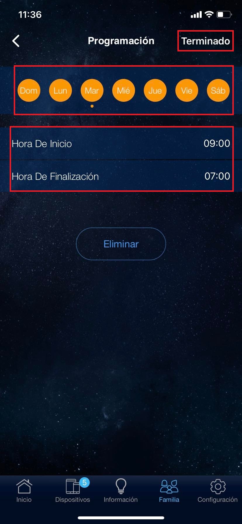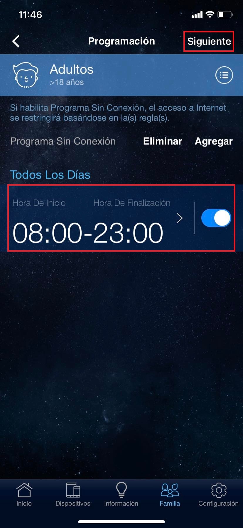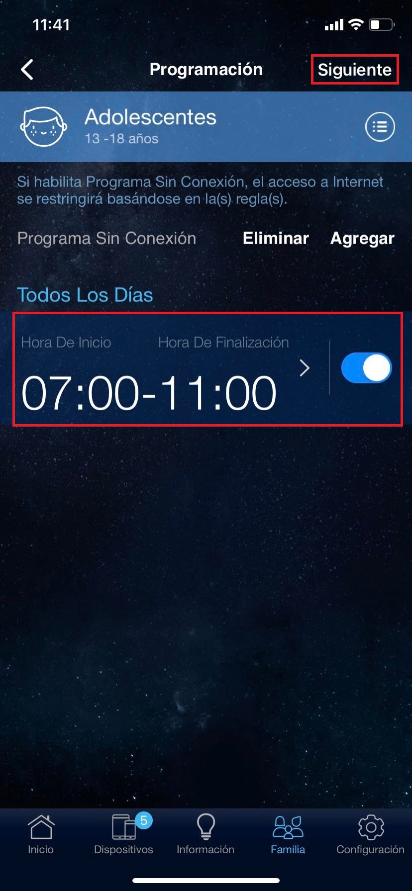 Para ello tendremos que realizar los mismos pasos hechos en el inciso #3. Pero los horarios pueden cambiar dependiendo la configuración que coloquemos para así cuidar la seguridad de nuestra familia.