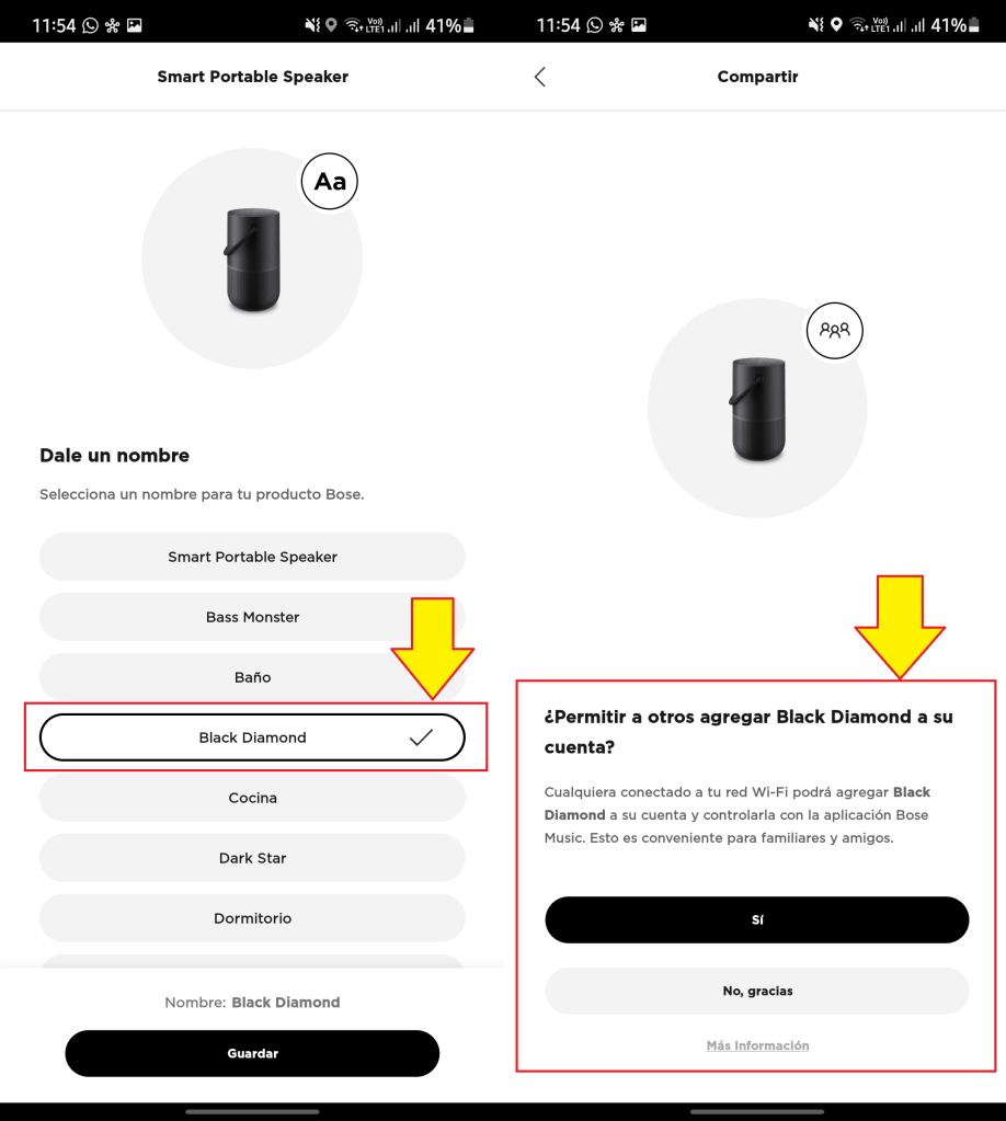 Aquí nos pedirá que coloquemos el nombre que queremos a nuestra bocina y luego si queremos añadirla a nuestra cuenta Bose.