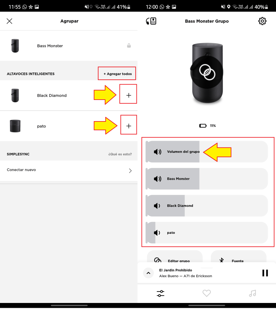 Para ambas bocinas el mismo proceso y una vez ya configuradas ambas, seleccionamos la bocina con la que vamos a agrupar las demás y damos clic en el botón “Agrupar”.