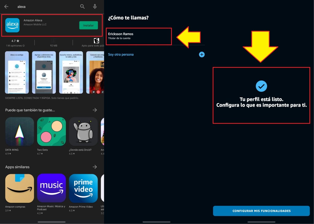 Descargamos la aplicación Amazon Alexa desde la tienda de aplicaciones, luego iniciamos sesión con la cuenta Amazon y seguimos las instrucciones para terminar de instalar la aplicación.