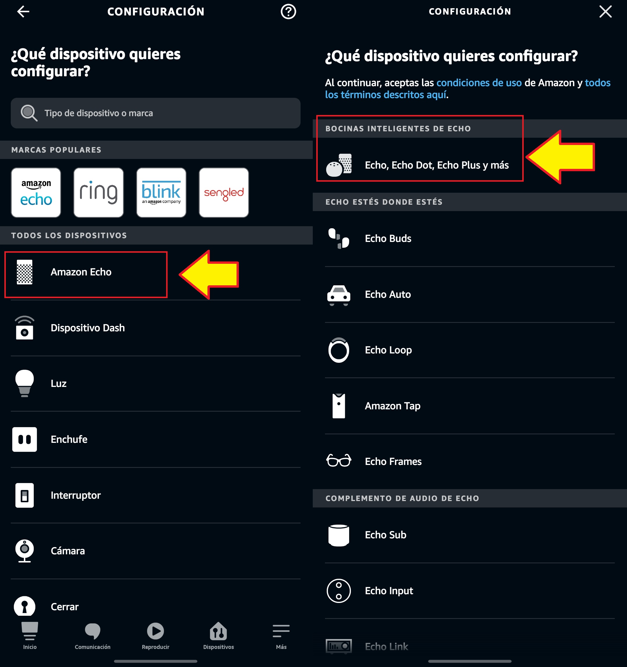 Seleccionamos la serie de equipo que vamos a agregar, en este caso es “Amazon Echo” y luego seleccionamos “Bocinas inteligentes de Echo”.
