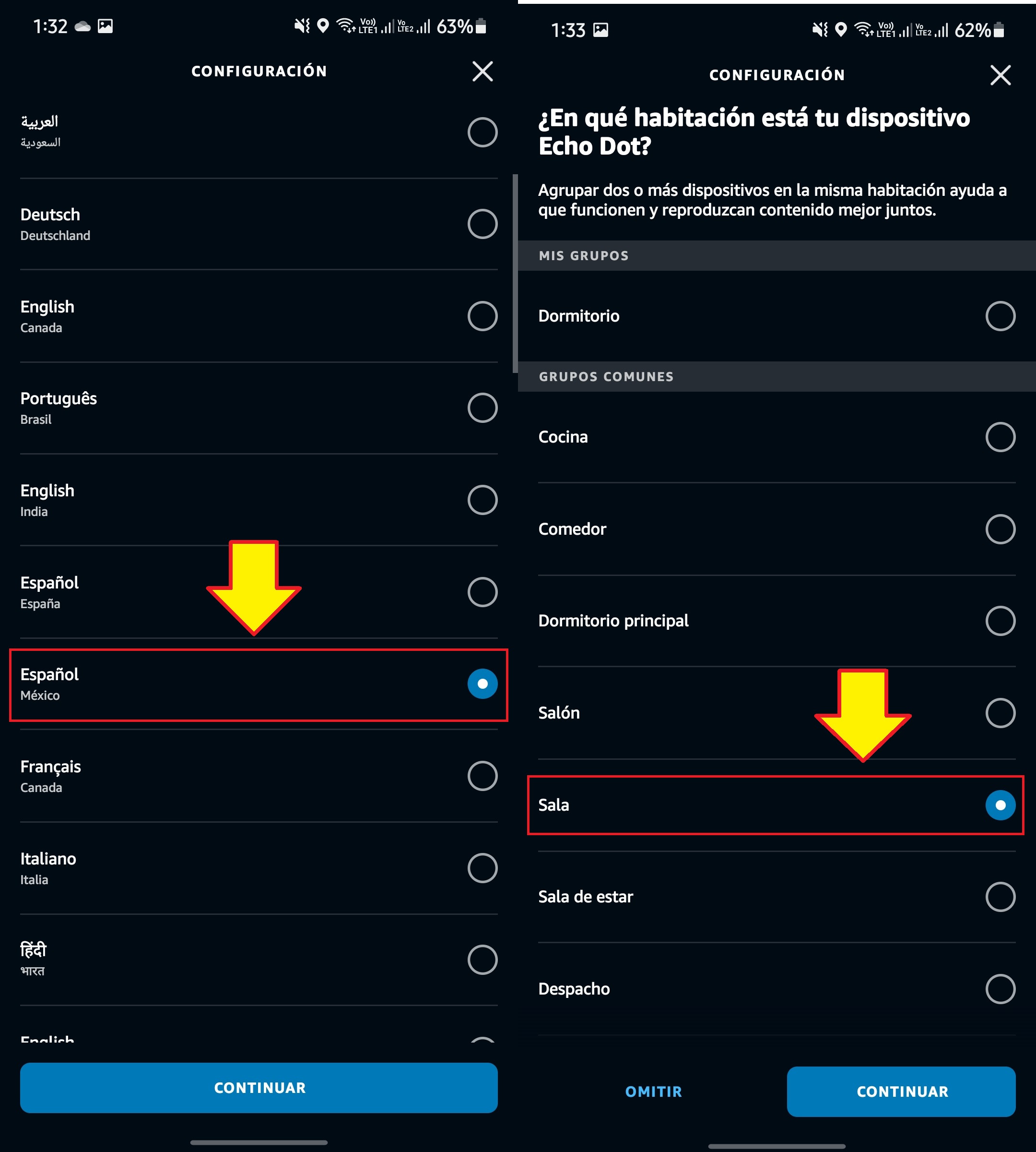 Ahora seleccionamos el idioma que queremos para nuestra bocina y seleccionamos la ubicación en nuestro hogar donde va estar nuestra bocina. Realizamos estos en todas las bocinas que vayamos a agregar.