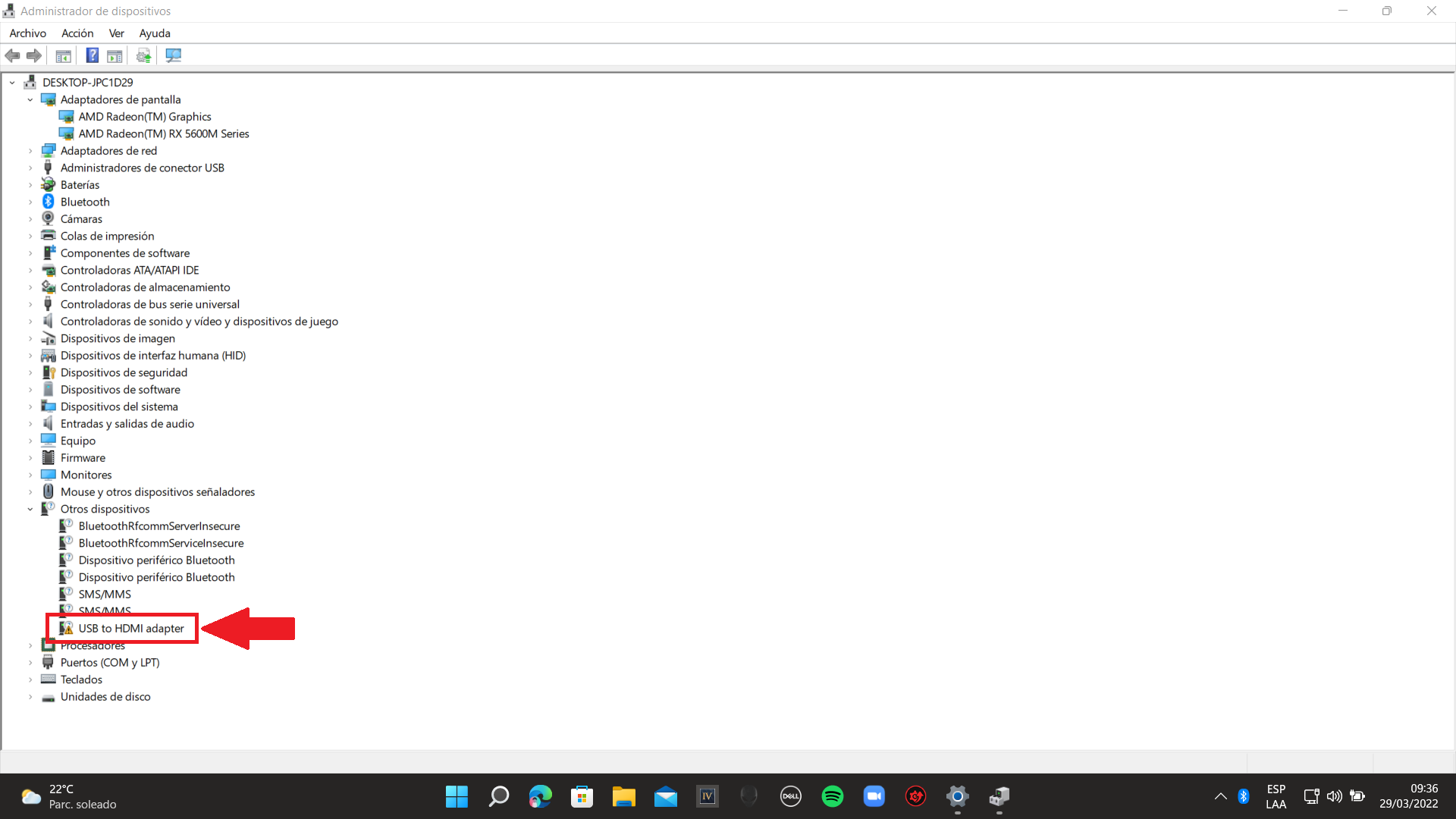 Ahora vamos a conectar nuestro adaptador USB a nuestro equipo. Al hacer esto podremos verificar en el administrador de dispositivos que nuestro adaptador ha sido reconocido.