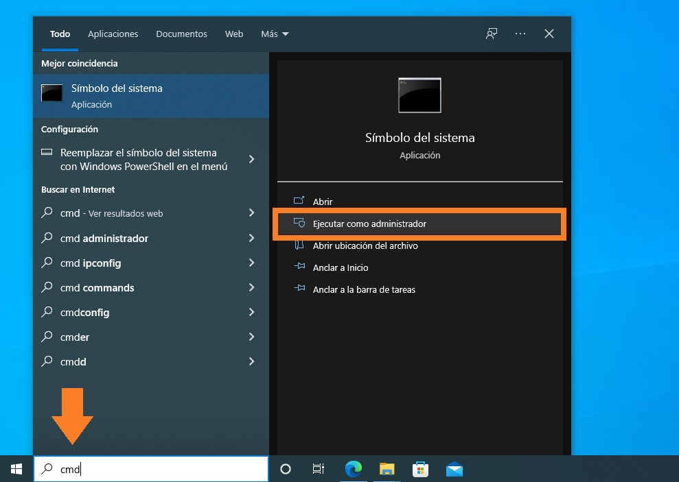 Abrimos el símbolo de sistema y lo ejecutamos en modo administrador.
