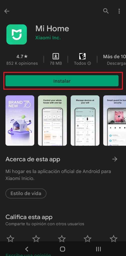 Ya descargada e instalada la App Xiaomi Home.