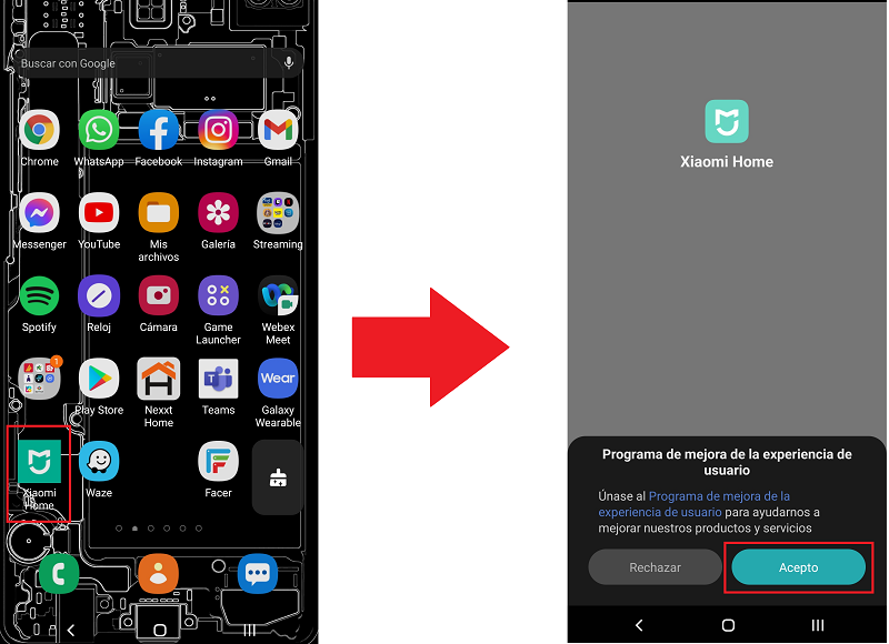 Ingresamos a nuestra tienda de aplicaciones, en este caso es “Play Store” y descargamos la App Mi Home.