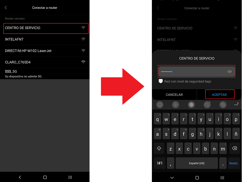 - Seleccionamos la red que deseemos e ingresamos la contraseña del WiFi.