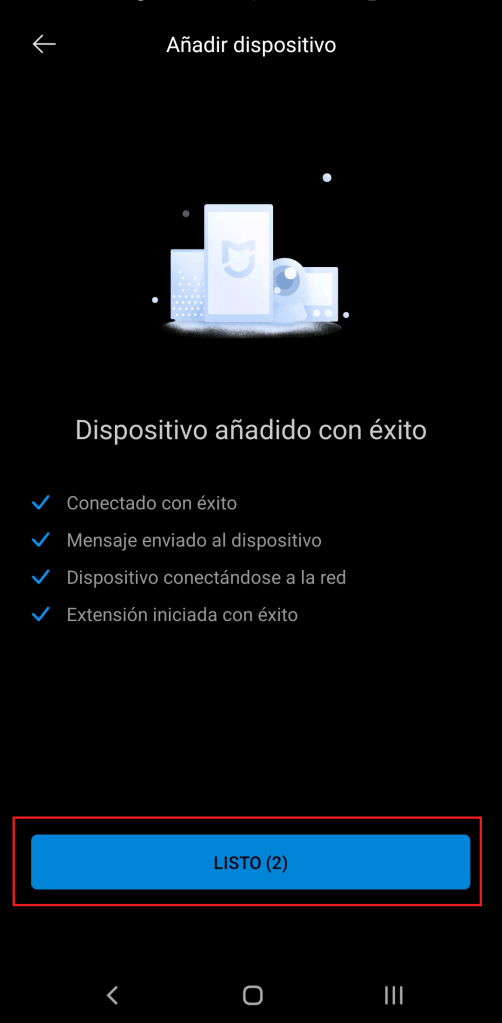 - Al terminar de añadirse a nuestro dispositivo con éxito, nuestro Smart Hub está listo para su uso y con ello poder vincular otros dispositivos.