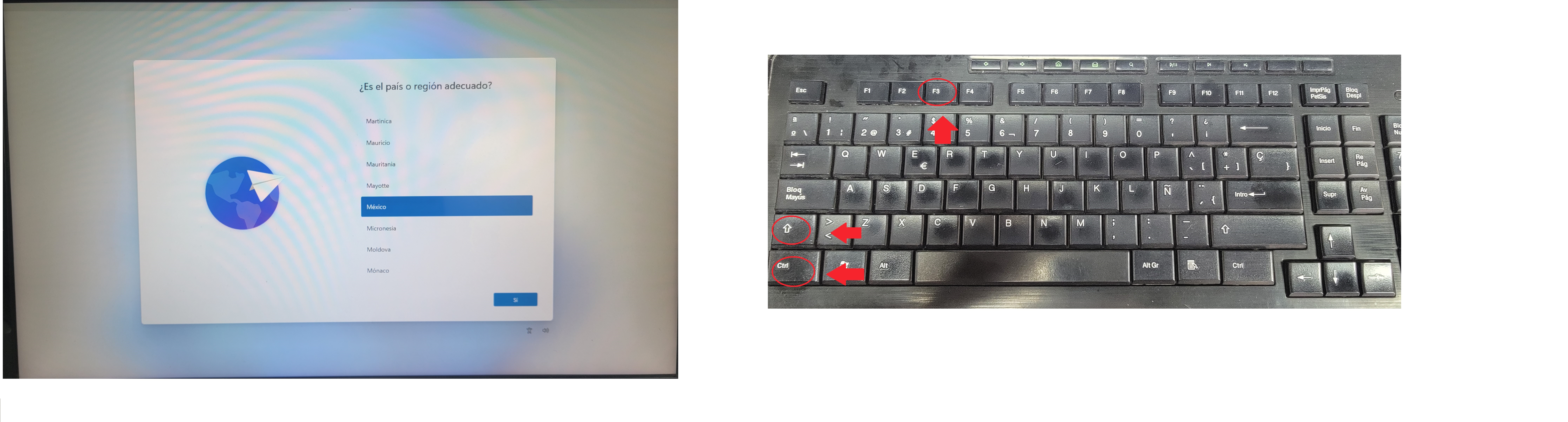 Para el siguiente ejemplo usaremos una PC la cual no está inicializado el sistema operativo, como primer paso en la pantalla de inicio presionamos las siguientes teclas: Ctrl + Shift + F3.