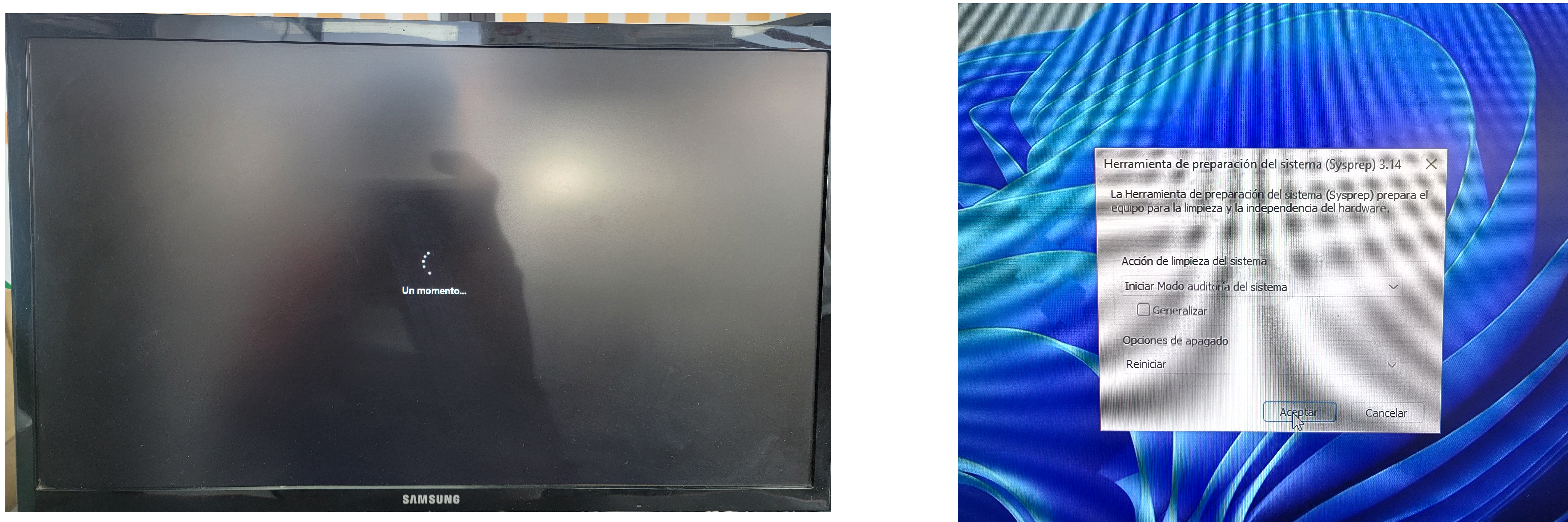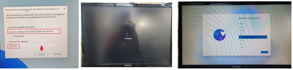 Para finalizar en la ventana que nos apareció en el Paso #2 confirmamos que esté seleccionado la opción «Iniciar la configuración rápida (OOBE) del sistema» y en opción de apagado que esté seleccionado «Reiniciar«, por último damos clic en «Aceptar«. Se reiniciará nuestro equipo e iniciará en la pantalla principal para así poder configurar nombre de usuario, idioma, región, contraseña, etc. Por la persona que lo utilizara.