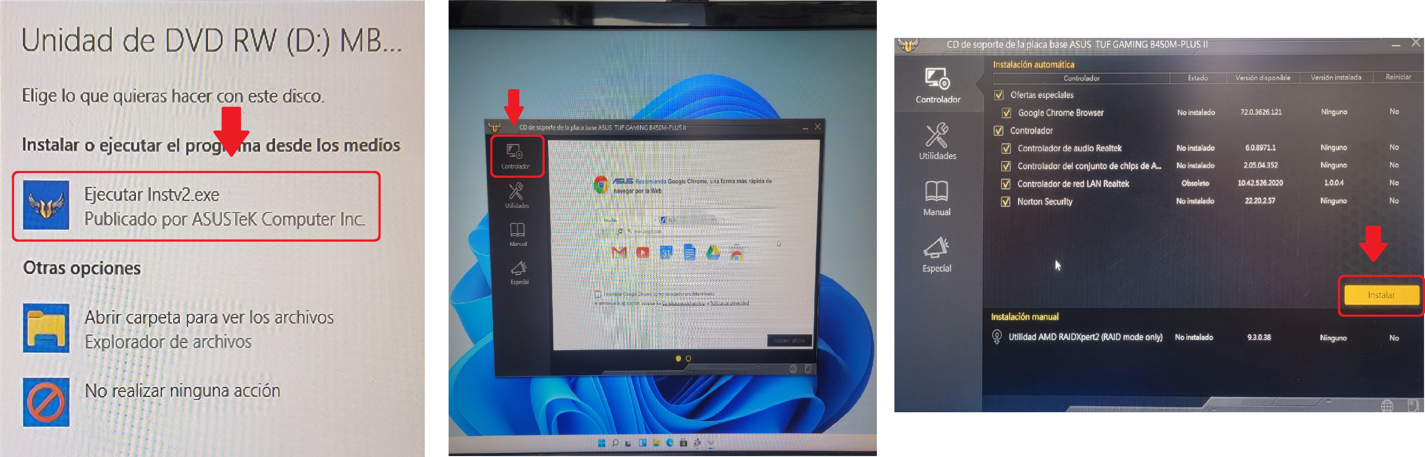 Para el siguiente ejemplo se realizará instalación de los drivers por medio del CD de instalación que viene incluido con la motherboard, también podemos instalarlos descargándolos de la página del fabricante de la motherboard.