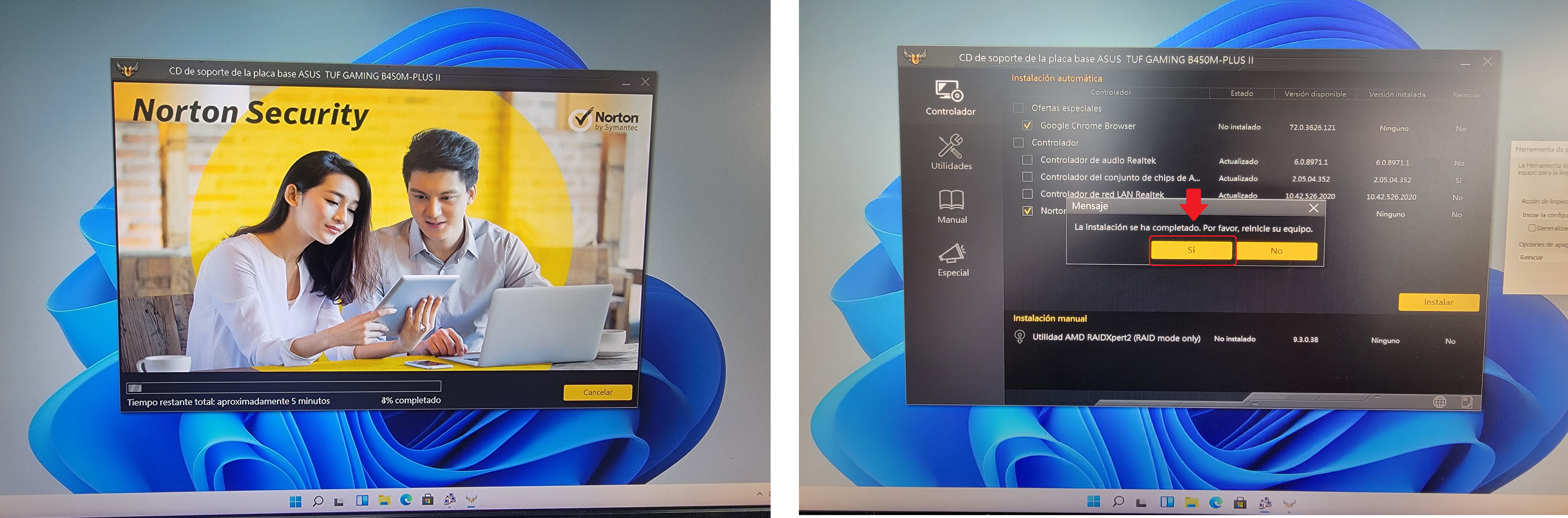 Al finalizar la instalación de todos los driver nos solicitará que reiniciemos el equipo, damos clic en «Si«.