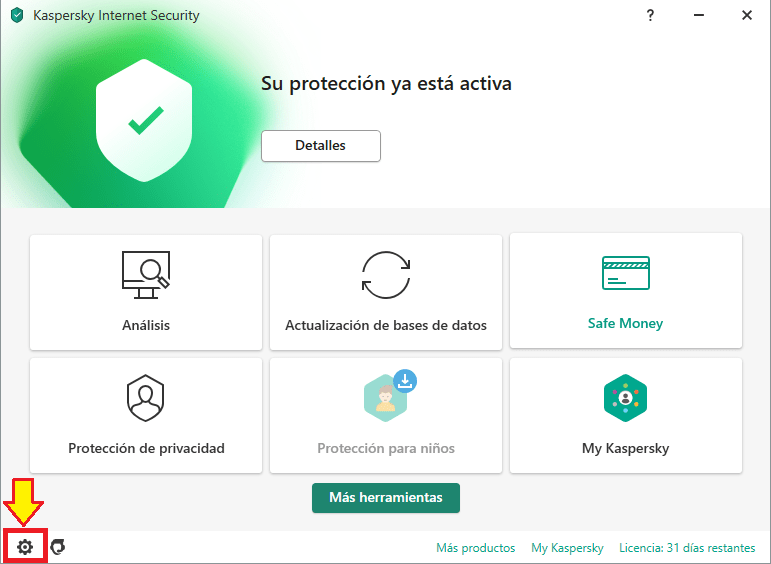 En la aplicación del antivirus nos dirigimos a la parte inferior Izquierda donde está el icono del engranaje y damos clic para acceder a la configuración.