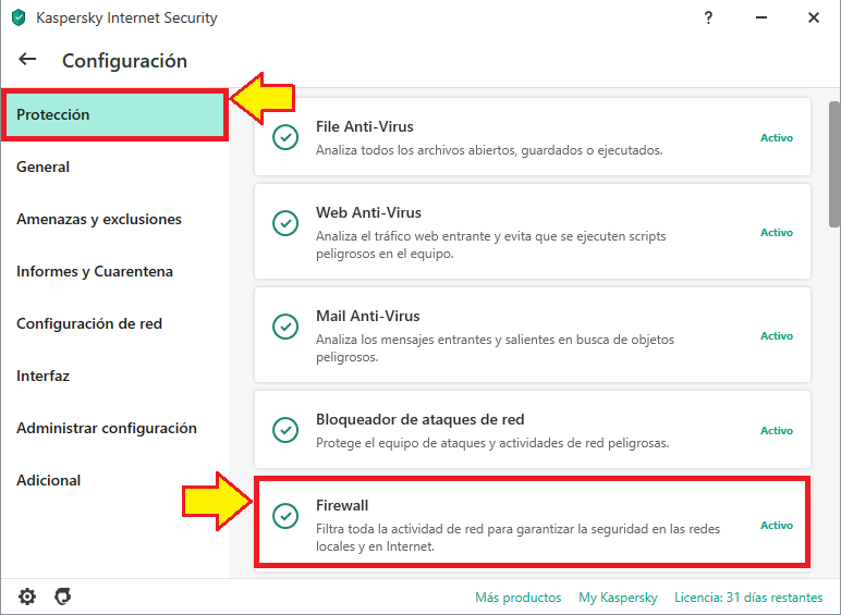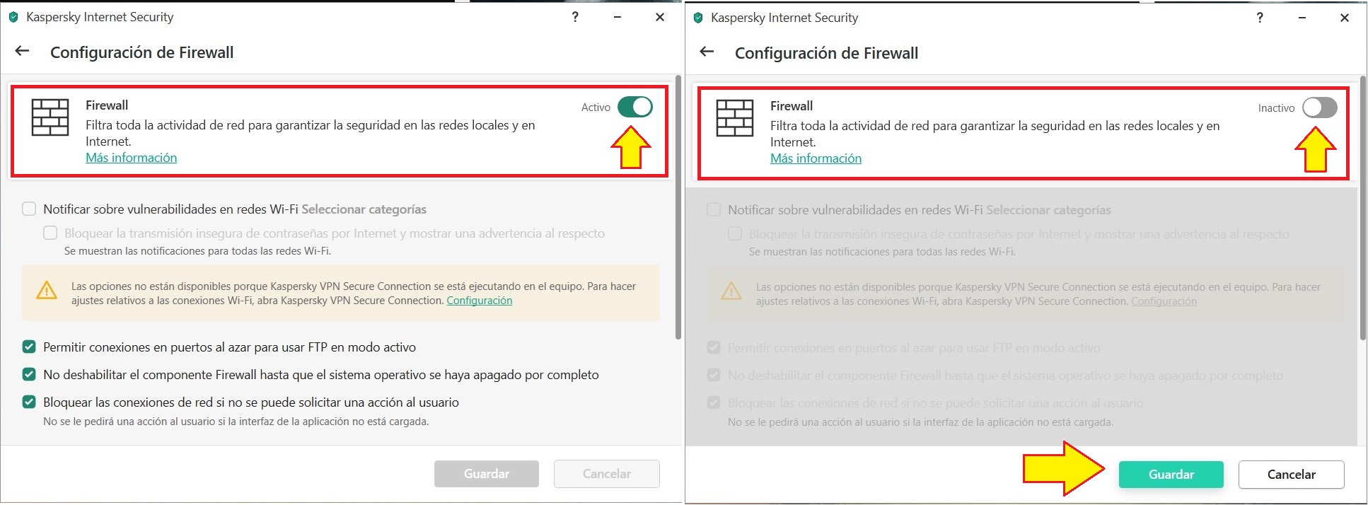 Activar o Desactivar el Firewall cuando se tiene Kaspersky Internet Security instalado en el equipo.