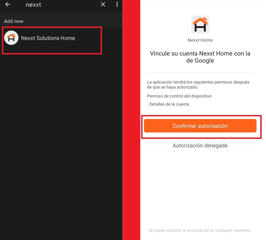 Realizamos la búsqueda, seleccionamos y agregamos la aplicación “Nexxt Solutions Home”, autorizamos los permisos para vincular la aplicación de Nexxt Home con el Asistente de Google.