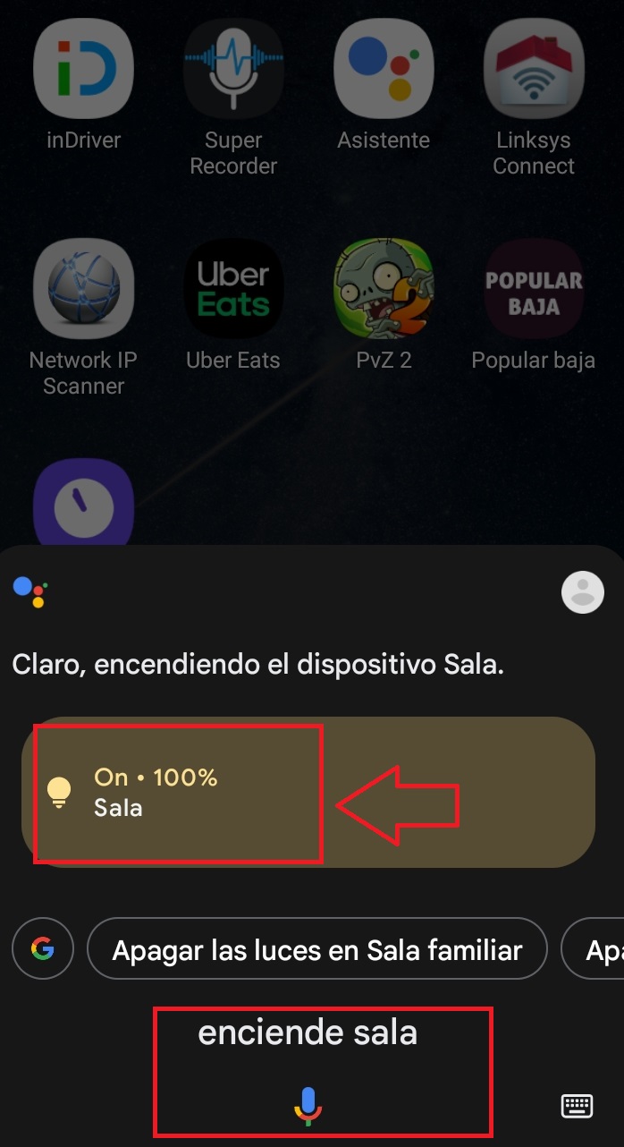 En el menú inicio de nuestro dispositivo móvil le indicaremos el comando de voz Google Asisstant que encienda nuestro dispositivo vinculado a la aplicación Nexxt Home. Ejemplo (Okey Google Enciende Sala), tendremos que llamar a nuestro dispositivo por el nombre asignado en la aplicación Nexxt Home.