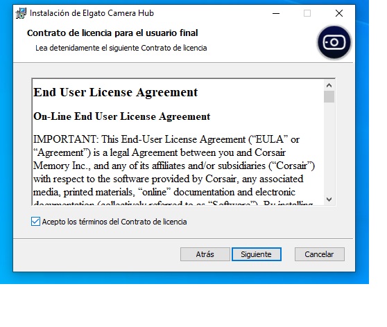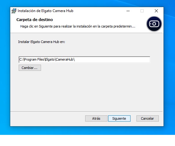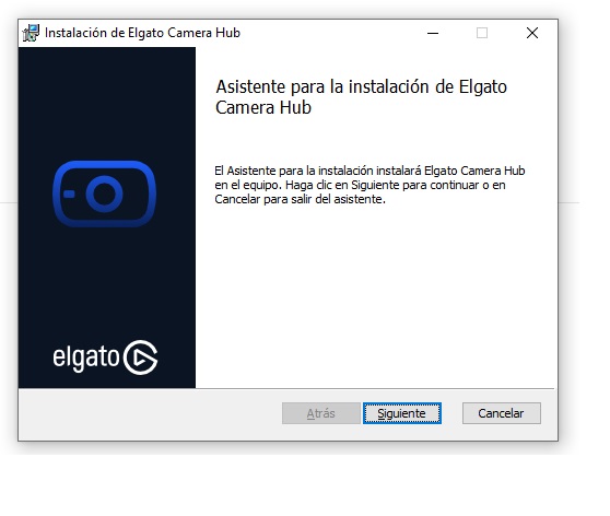 Al ejecutar el archivo de programa «Camera HUB» nos mostrará una ventana con el asistente de instalación, debe hacer clic en «Siguiente«.