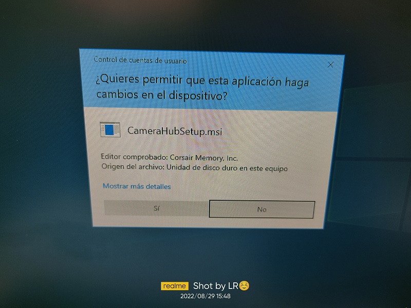 Seguidamente, conectamos la cámara en el puerto USB 3.0. Y ejecutamos HUB CAMERA.
