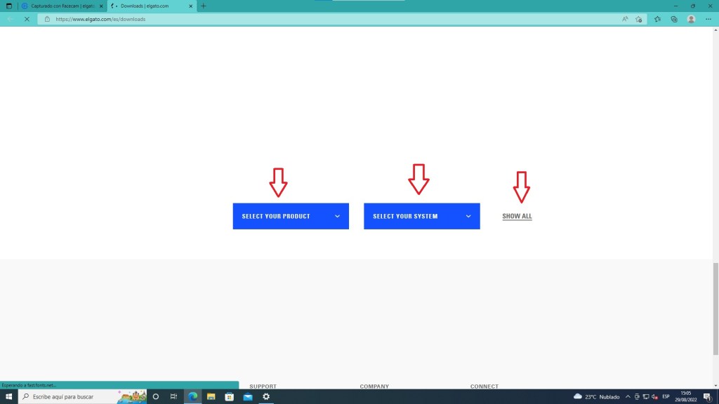 En la parte inferior de la página tienen un apartado donde debemos seleccionar el producto y sistema operativo.