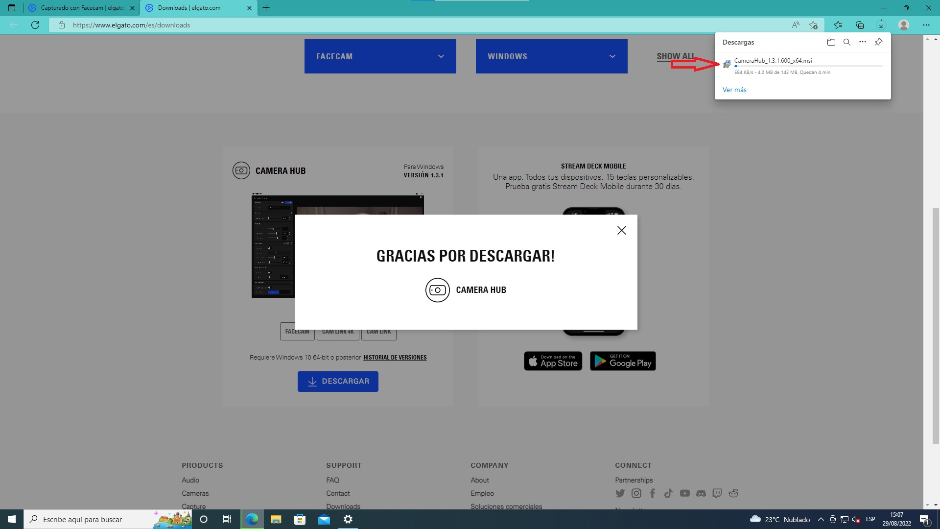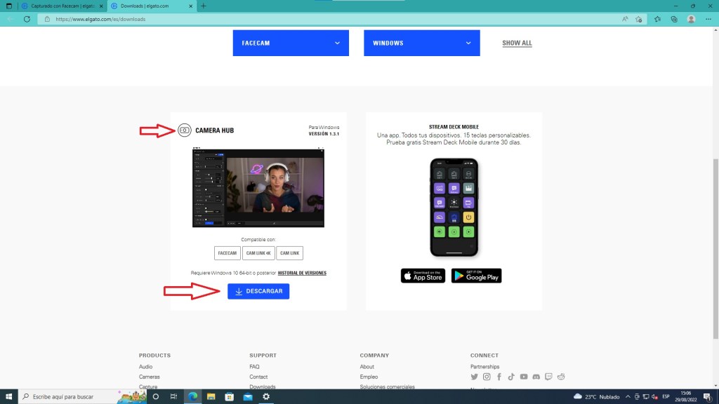 Debemos de abrir el navegador e ingresar a la página oficial de “ https://www.elgato.com/en/downloads”
