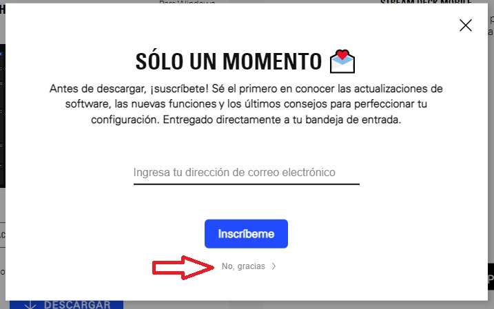 A continuación, nos mostrará un mensaje para ingresar correo electrónico y recibir actualizaciones acerca de la marca y productos. Es opcional si desea agregar el correo electrónico, para este artículo omití el correo electrónico en la opción «No, gracias«.