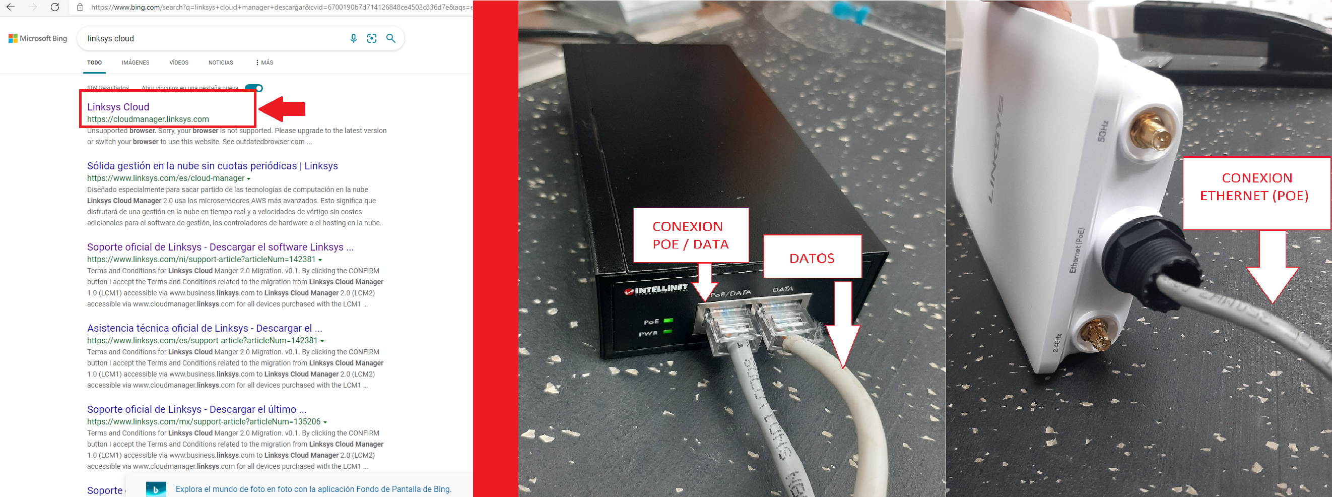 Conectamos nuestro inyector POE hacia nuestro Linksys Cloud Managed AC1300 Access Point WiFi Exterior LAPAC1300CE e ingresamos a la página Linksys Cloud: https://cloudmanager.linksys.com/signin.
