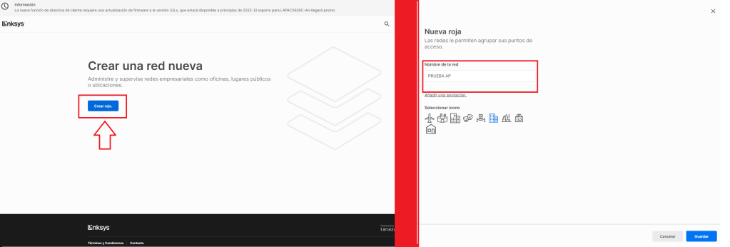 Guardamos la red creada en nuestro Linksys Cloud Managed AC1300 Access Point WiFi Exterior LAPAC1300CE.