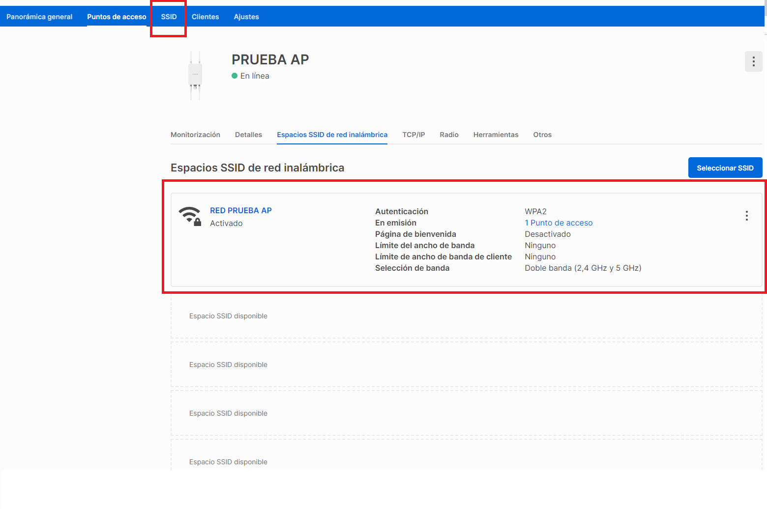 Listo, al seleccionar la opción “SSID” nos mostrará la configuración realizada de nuestro Access Point.
