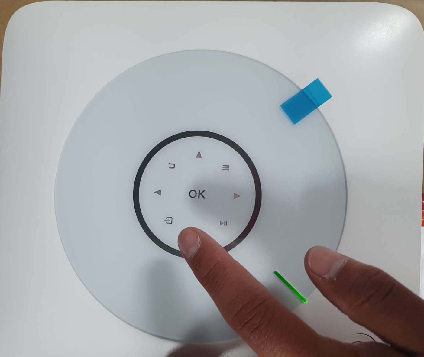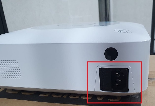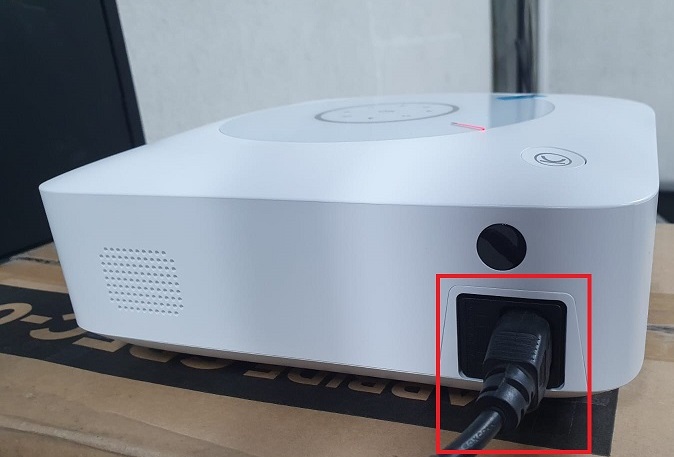 Conectamos nuestro proyector a un tomacorriente, utilizando nuestro cable el cual viene ya incluido, luego de ello procedemos a encenderlo desde el botón lateral, automáticamente encenderá el LED en color verde.