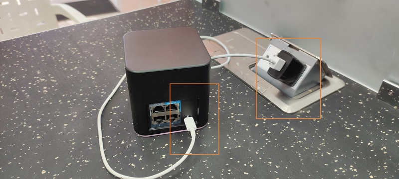 Conectamos nuestro UBIQUITI ACB-ISP UISP AIR CUBE ISP ACCESS POINT NEGRO a la corriente eléctrica por medio de un cable micro-USB y un adaptador de corriente de 5V 1A (debemos de tomar en cuenta que cable micro-USB y adaptador no vienen incluidos).