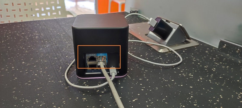 Conectamos un extremo del cable de red a nuestro router principal y el otro extremo en el puerto WAN de nuestro UBIQUITI ACB-ISP UISP AIR CUBE ISP ACCESS POINT NEGRO.