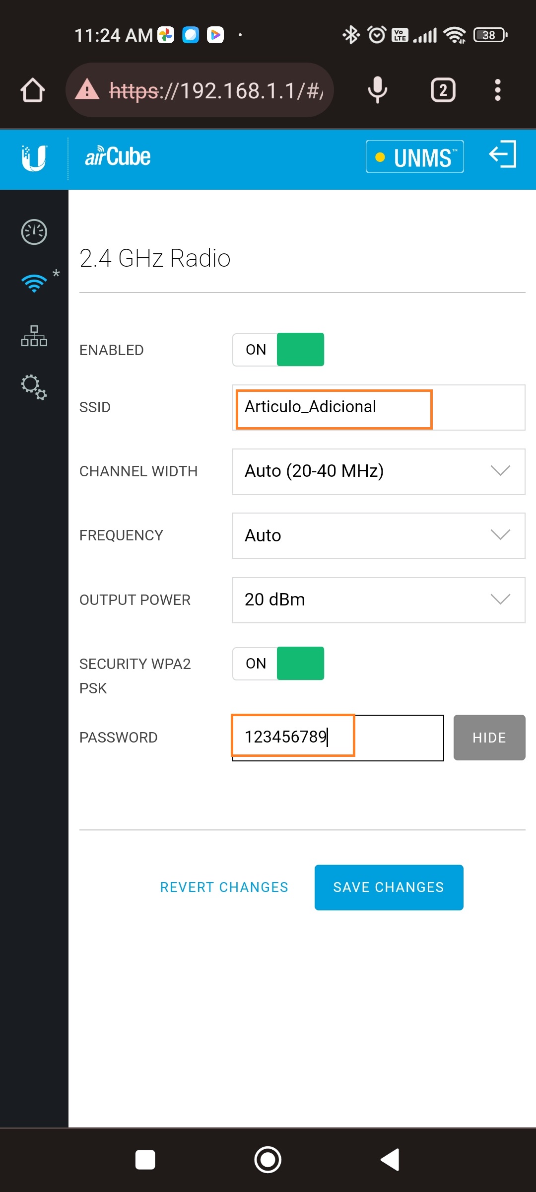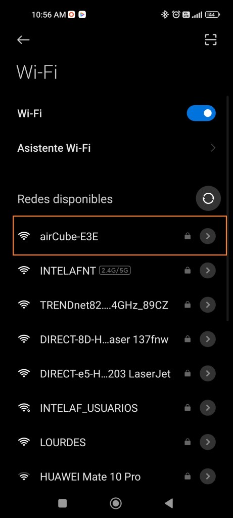 En nuestro dispositivo móvil nos conectamos a la red que genera nuestro UBIQUITI ACB-ISP UISP AIR CUBE ISP ACCESS POINT NEGRO, ingresamos la contraseña de fábrica: 12346578 para poder conectarnos.