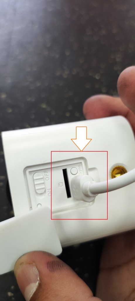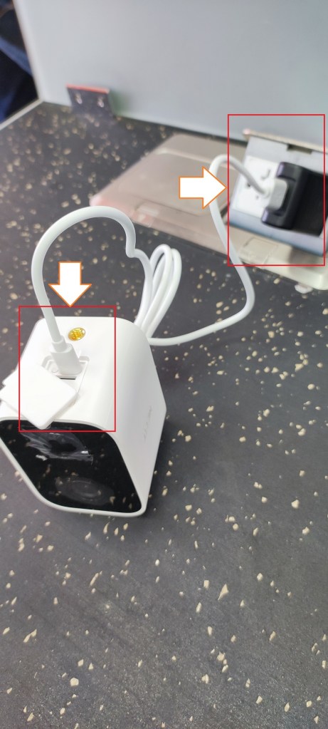 Conectamos a la corriente eléctrica nuestra cámara por medio del cable USB y un adaptador de corriente de 5 V 2A (no incluido).
