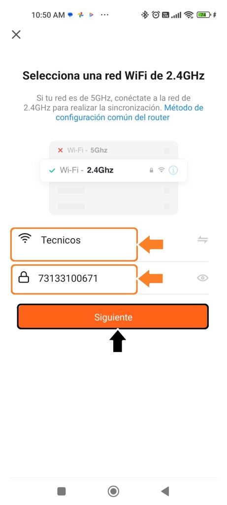 Confirmamos que la luz led de nuestra cámara esté parpadeando y seleccionamos «Siguiente«, ingresamos la contraseña de la red Wi-Fi a la que está conectado nuestro dispositivo móvil y seleccionamos «Siguiente«.