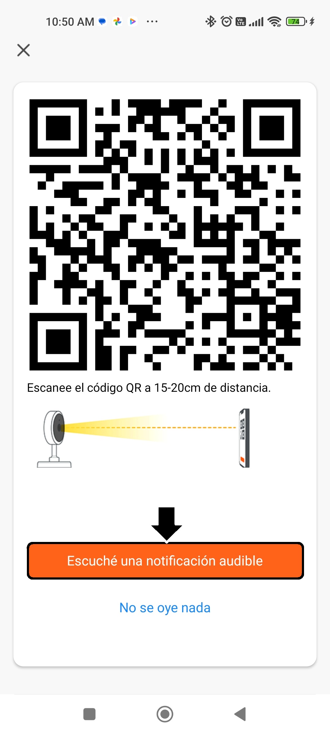 Colocamos la pantalla de nuestro dispositivo enfrente de nuestra cámara para que pueda escanear el código QR y confirmamos que se escuche un tono de notificación, luego seleccionamos «Escuche una notificación audible«.