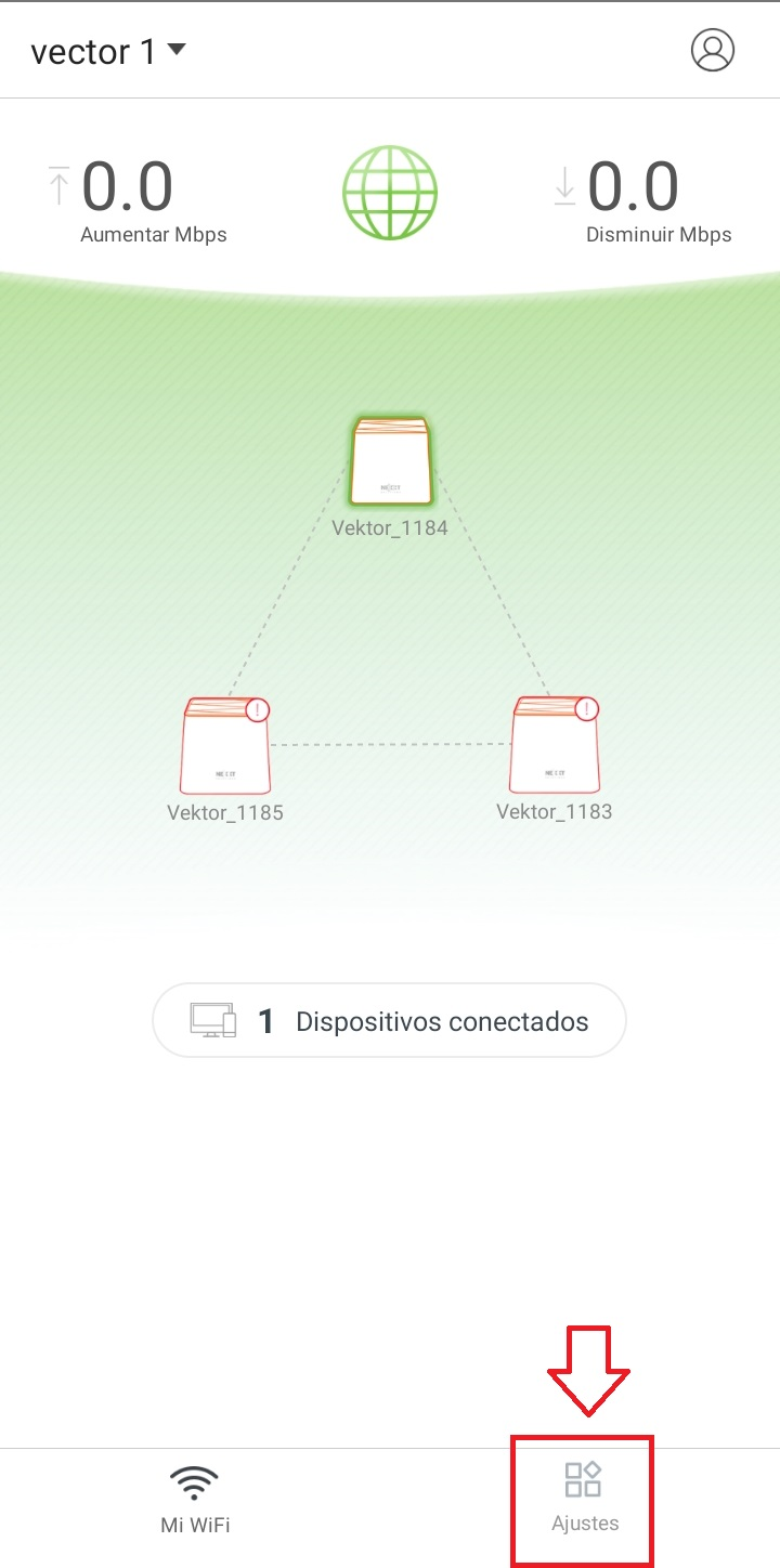 Ingresamos a la aplicación «Nexxt Wireless«, en la cual previamente ya tendremos que tener configurados nuestros NEXXT VEKTOR 3600-AC ROUTER WIFI SISTEMA MESH 3 NODOS BLANCO, seleccionamos la opción «Ajustes«.