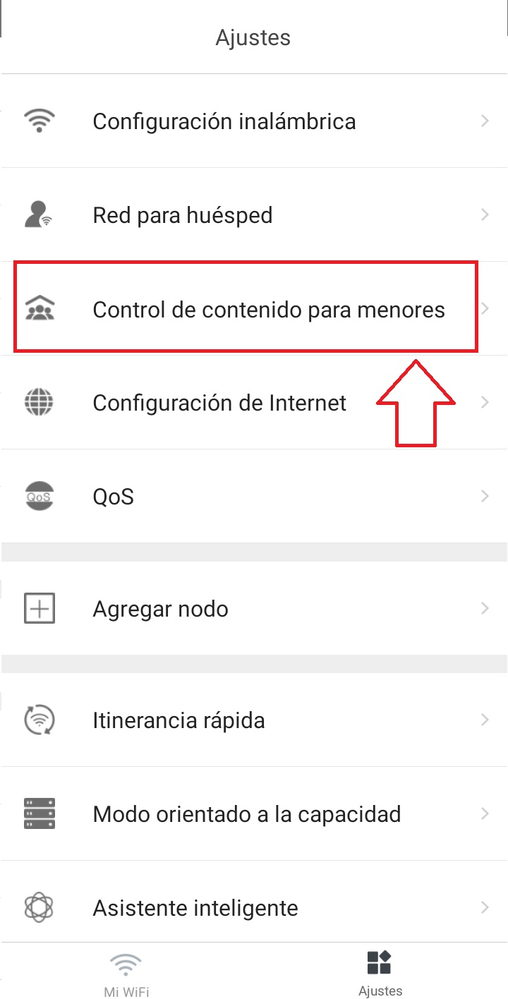 Seleccionamos la opción «Control de contenido para menores«.