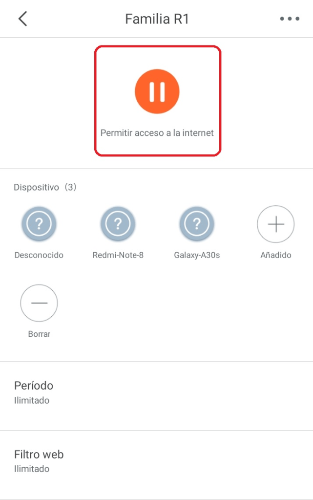 Listo, al finalizar el proceso, nuestro grupo de control parental será creado de manera exitosa y podremos pausar o reanudar el permiso de acceso a internet.