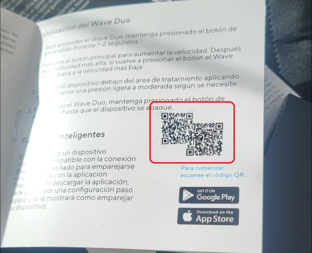 Como primer paso extraemos el manual de su empaque, donde nos brinda un código QR el cual escaneamos, nos dirigirá a la Google Play o APP Store para poder descargar la aplicación.