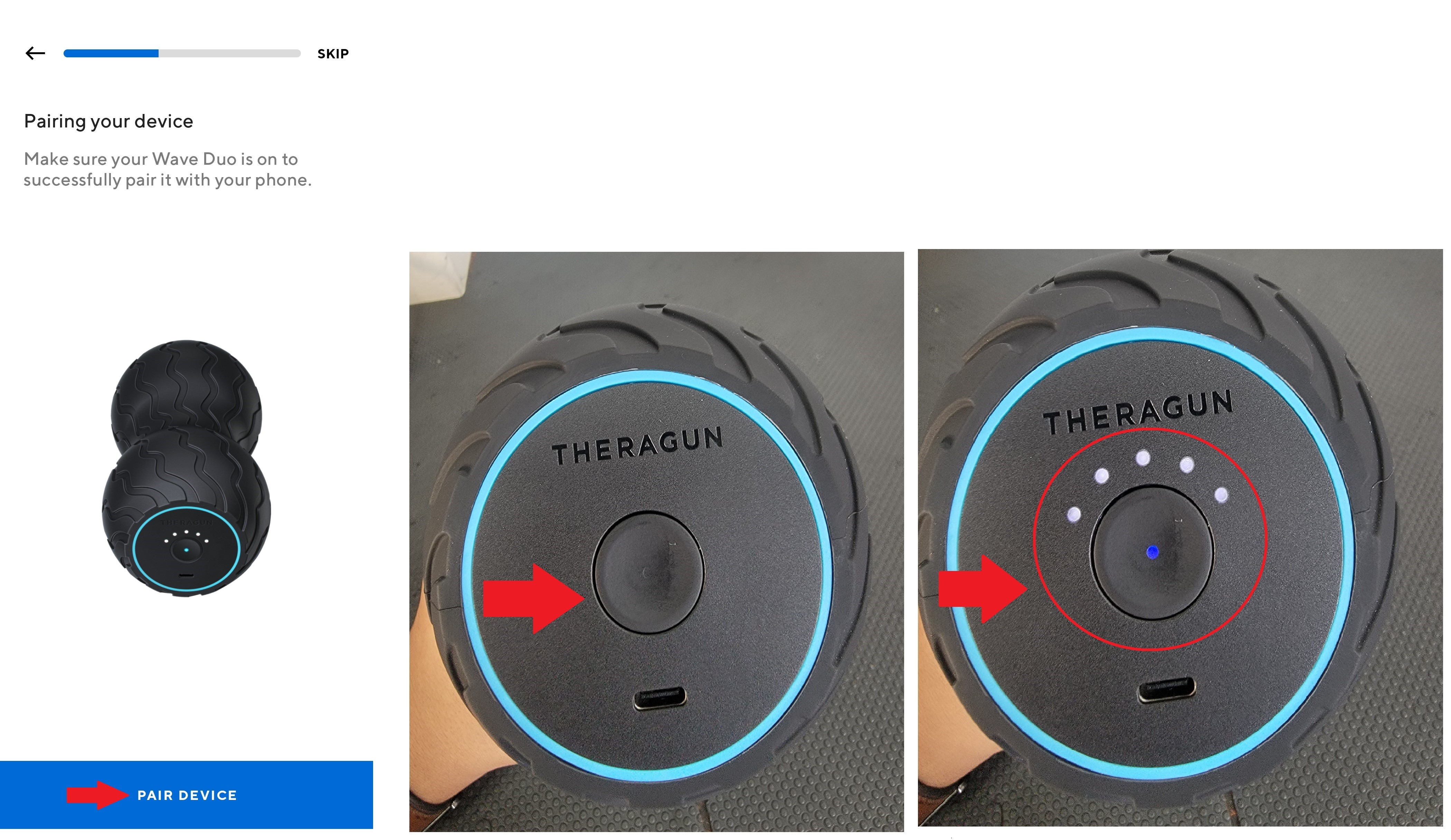 Seleccionamos, emparejar dispositivo, tendremos que encender nuestro Wave Duo, se encenderán todos los LED´s con ello indicara que estará vinculado.