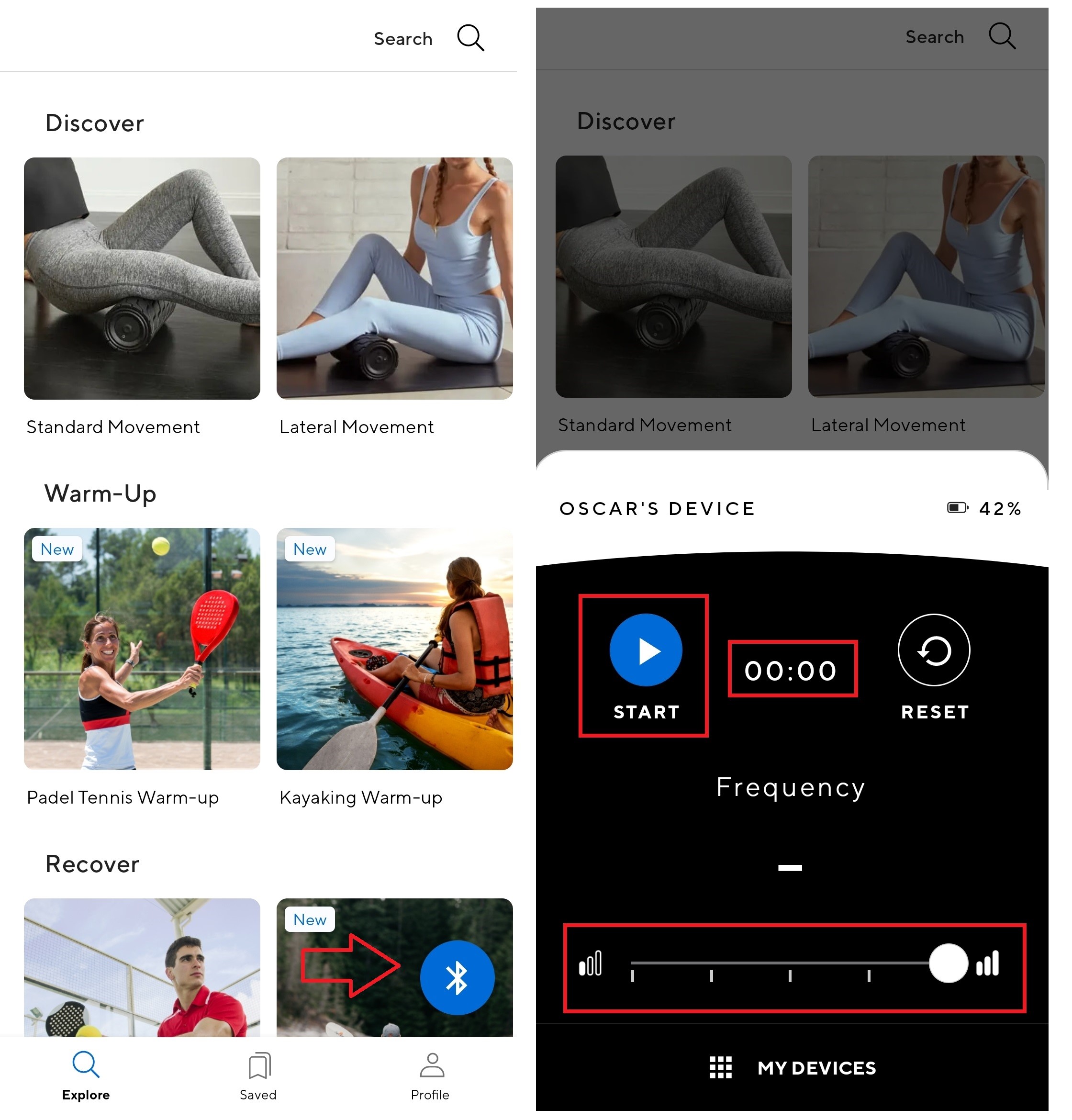 En la aplicación nos dará rutinas dependiendo la parte del cuerpo en la cual queremos realizar la terapia de masaje y al seleccionar el símbolo de bluetooth podremos controlar las funciones de nuestro Wave Duo como los niveles de intensidad, un cronómetro el cual nos medirá el tiempo de terapia, la función de encender y apagar nuestro dispositivo.