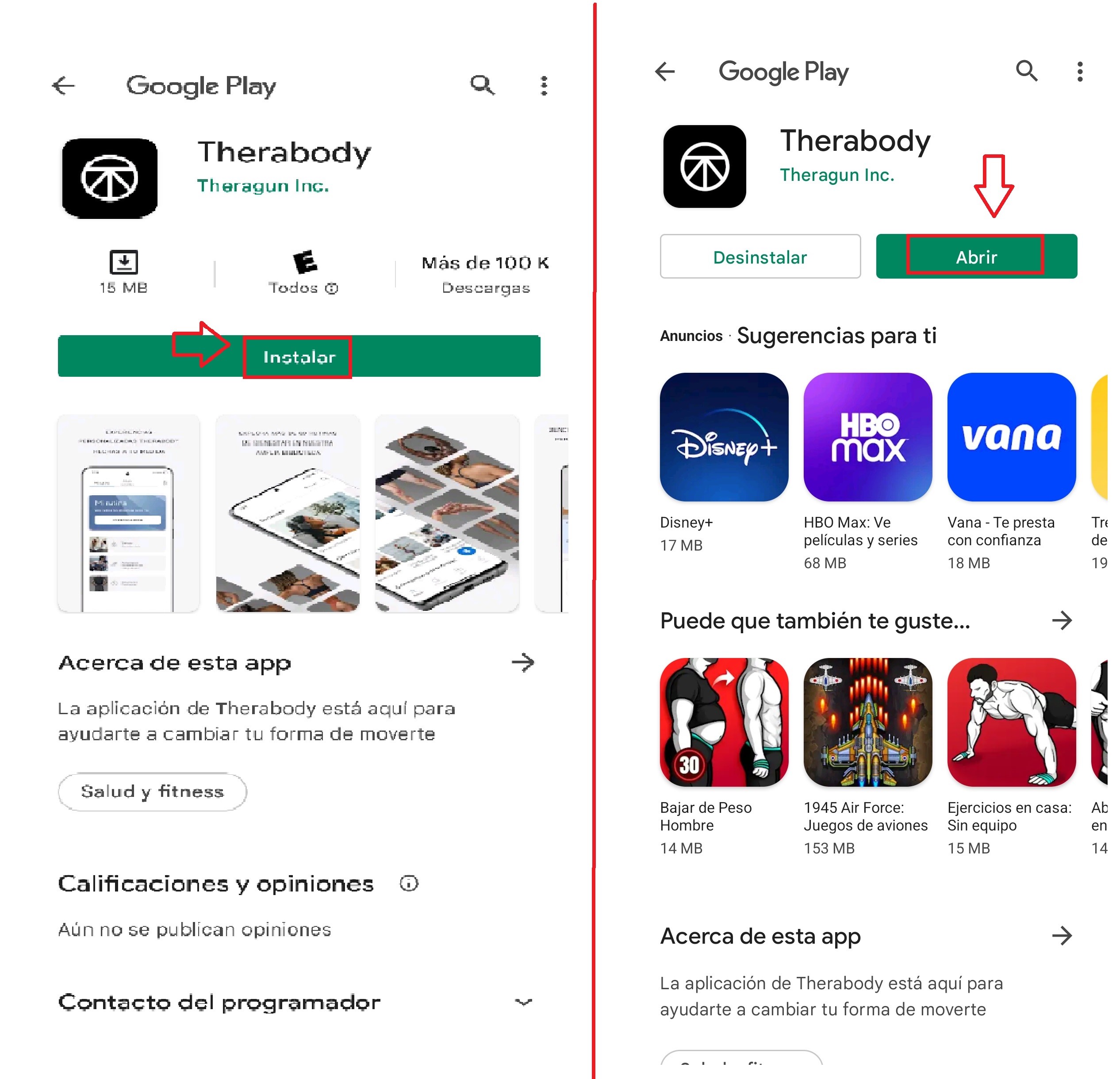 Nos dirigirá a la aplicación «Therabody«, la instalamos, al descargarse por completo la aplicación la abrimos.