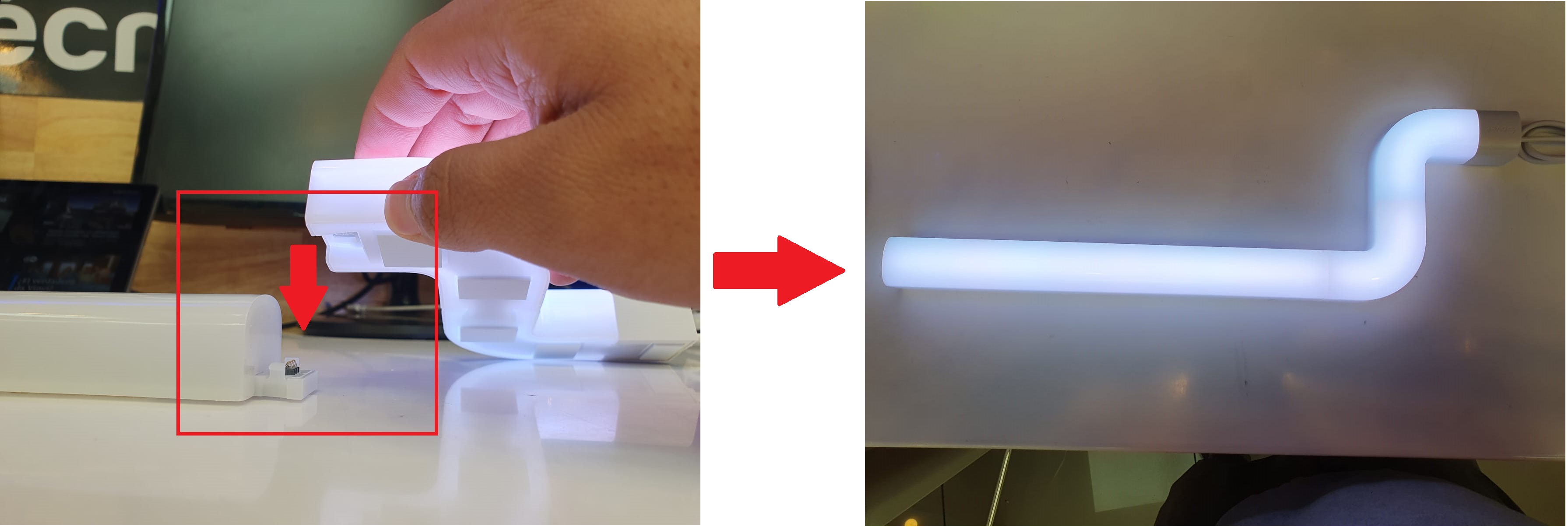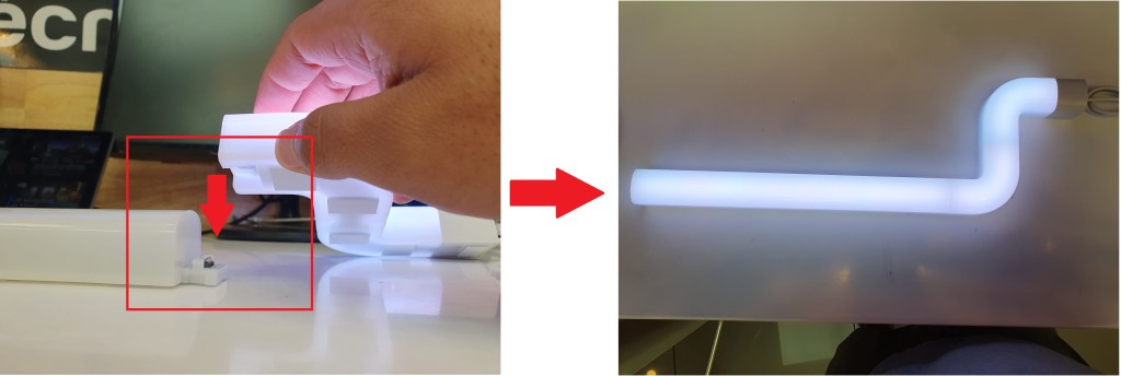 Ya que ha encendido nuestra lámpara, colocamos cada segmento y unión curva como deseemos.
