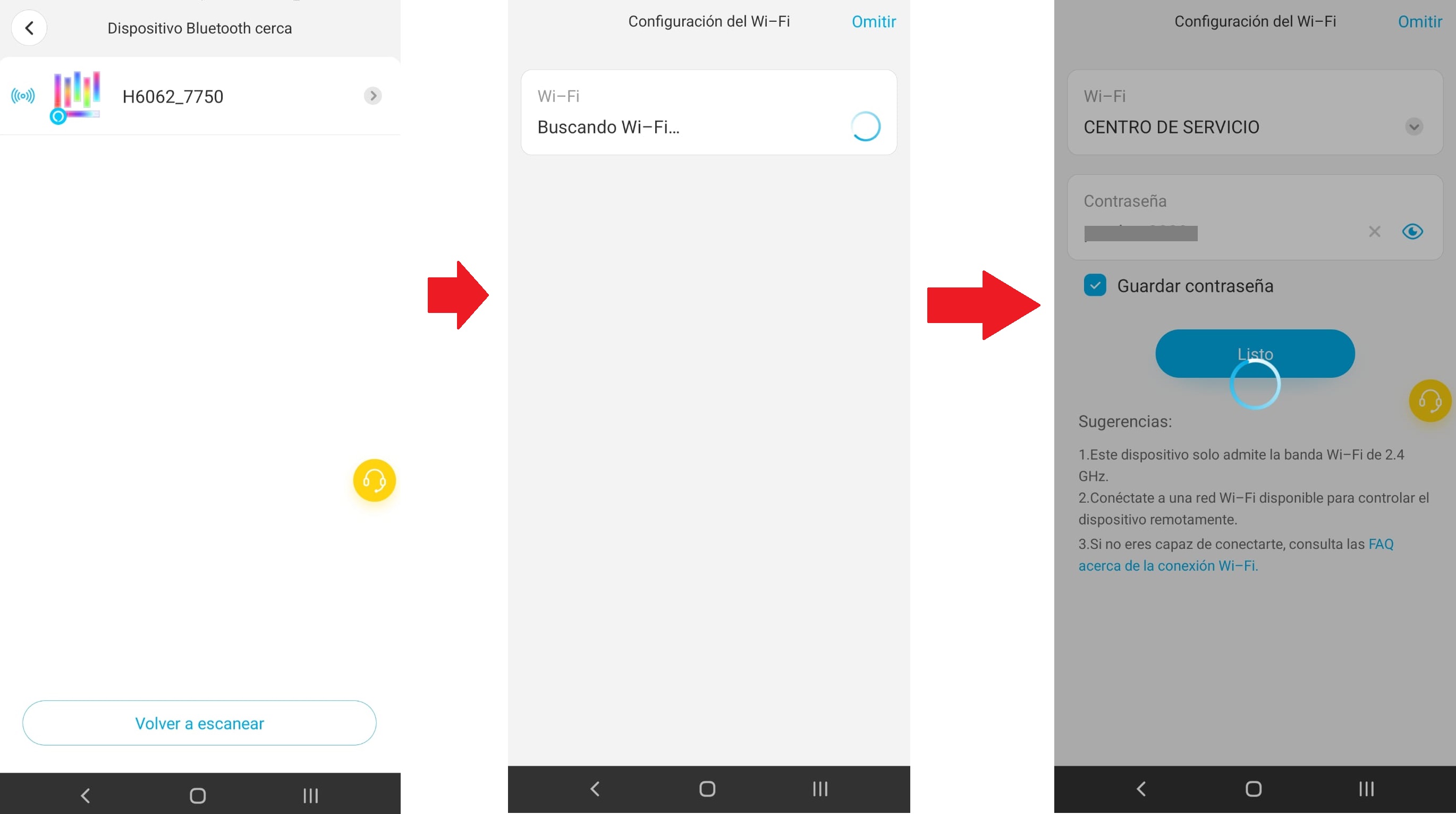 Lo siguiente es vincular nuestra lámpara a nuestra red Wi-Fi, seleccionamos el nombre de la red Wi-Fi al que la conectaremos, ingresamos la contraseña del Wi-Fi y seleccionamos «Listo«.