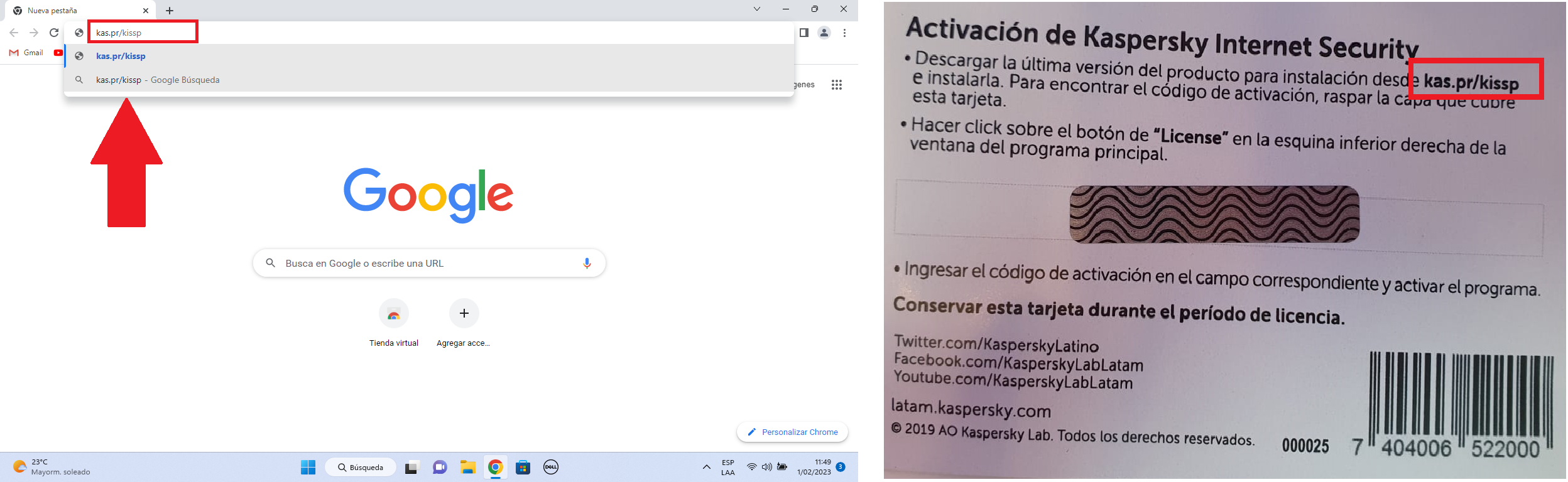 Ya estando en nuestro navegador ingresaremos la dirección que nos brinda nuestra licencia en la parte trasera.