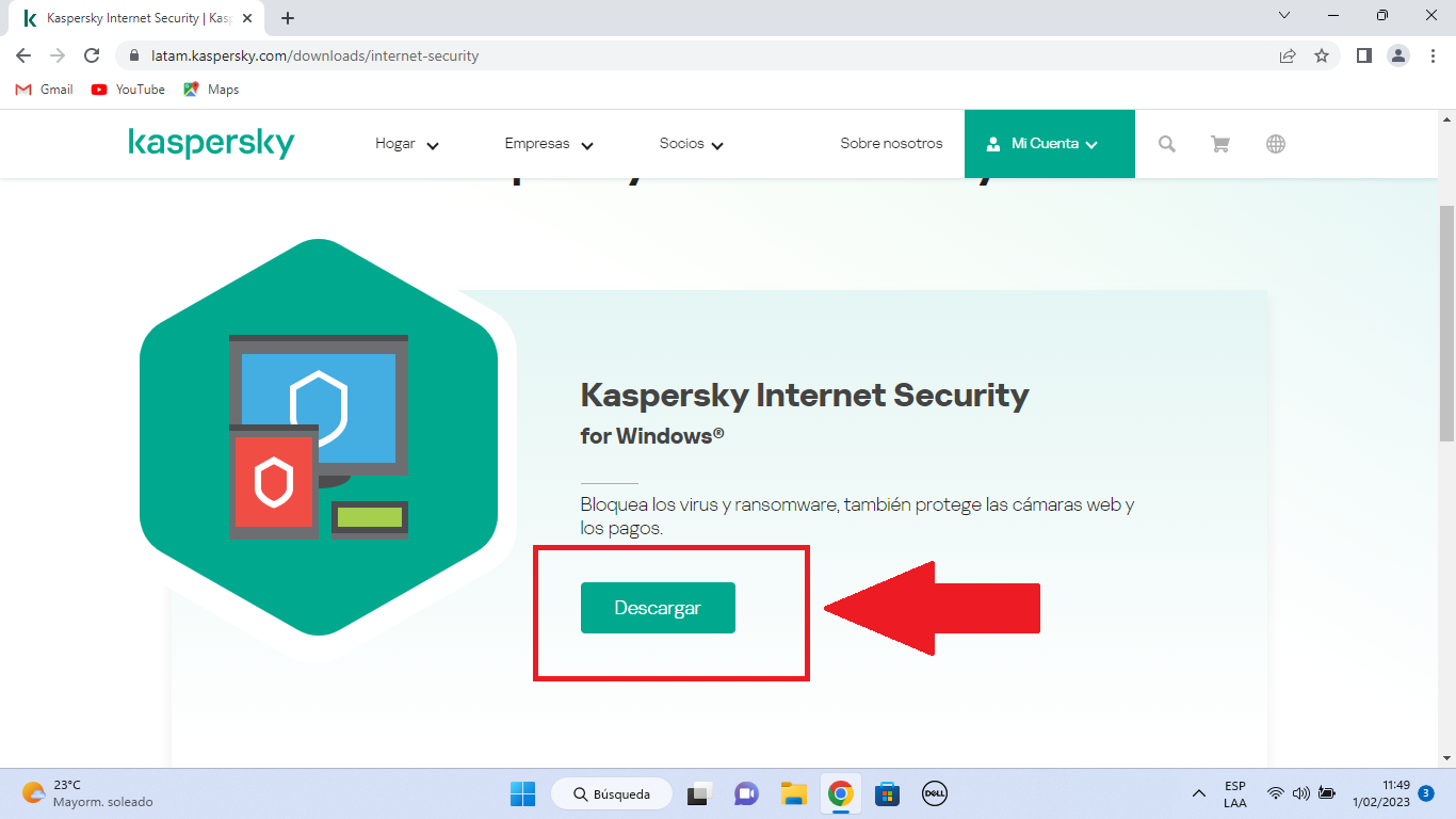 Después que nos hemos direccionado a la página, descargamos el instalador de nuestro Antivirus.