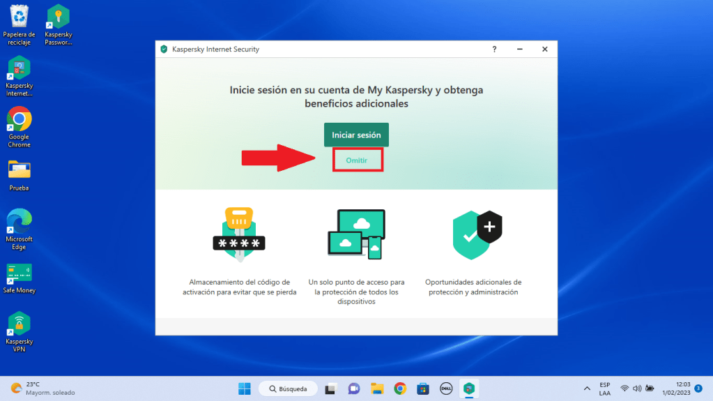 Si deseamos vincular nuestro correo al antivirus, seleccionamos iniciar sesión o si deseamos utilizar nuestro antivirus sin correo, seleccionamos «Omitir«.