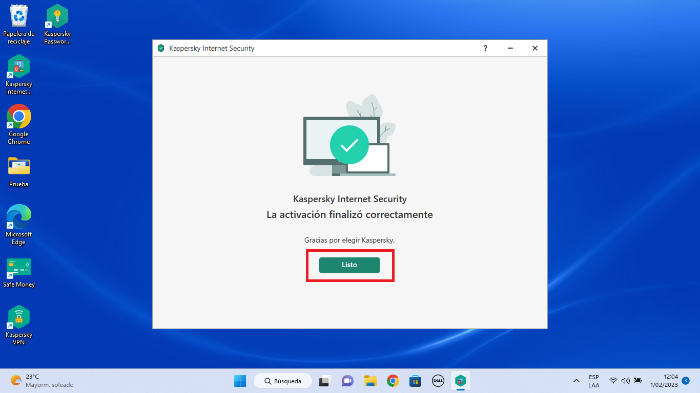 Como podemos confirmar finalizamos la activación correctamente, ahora presionamos “Listo”